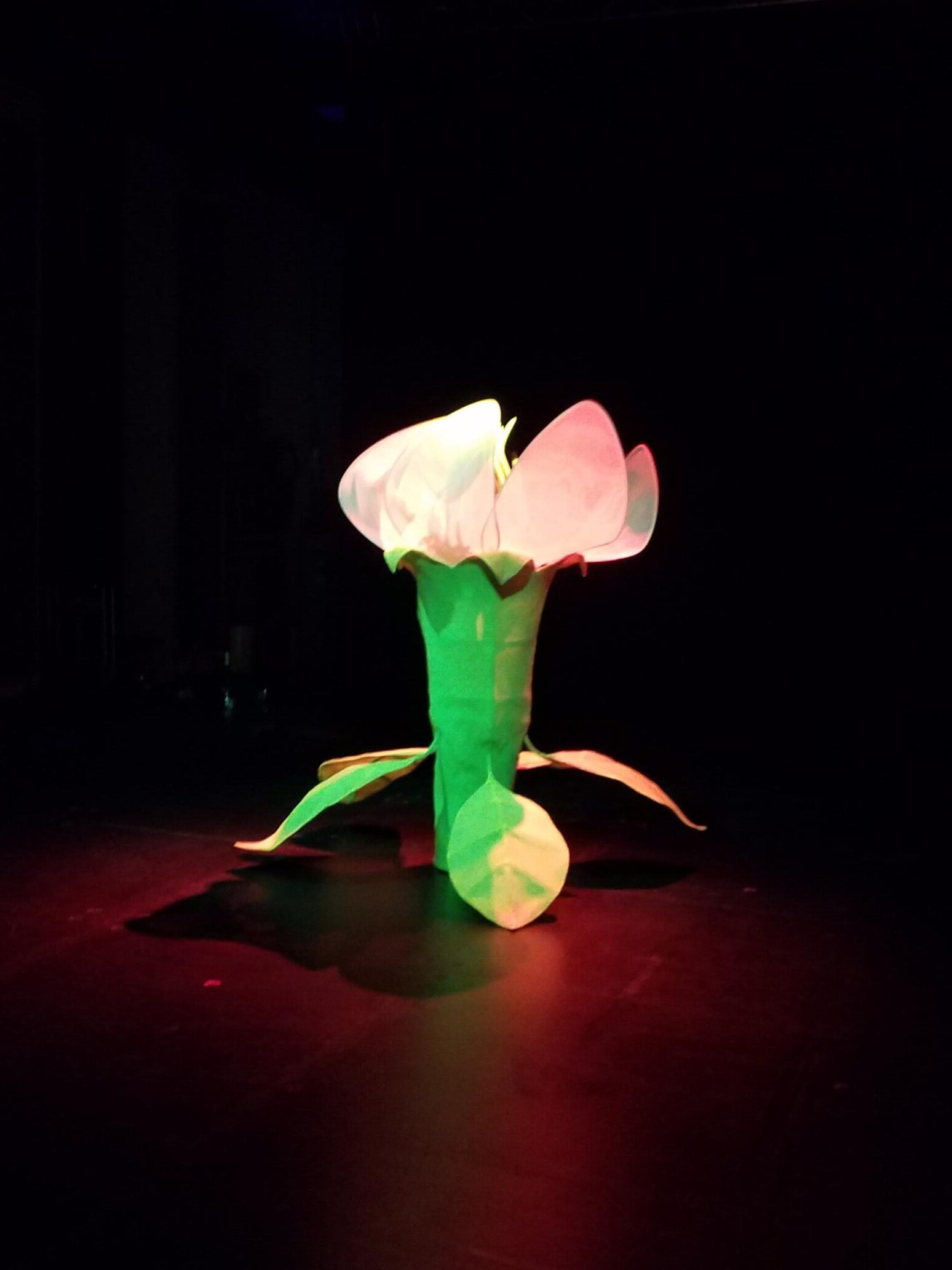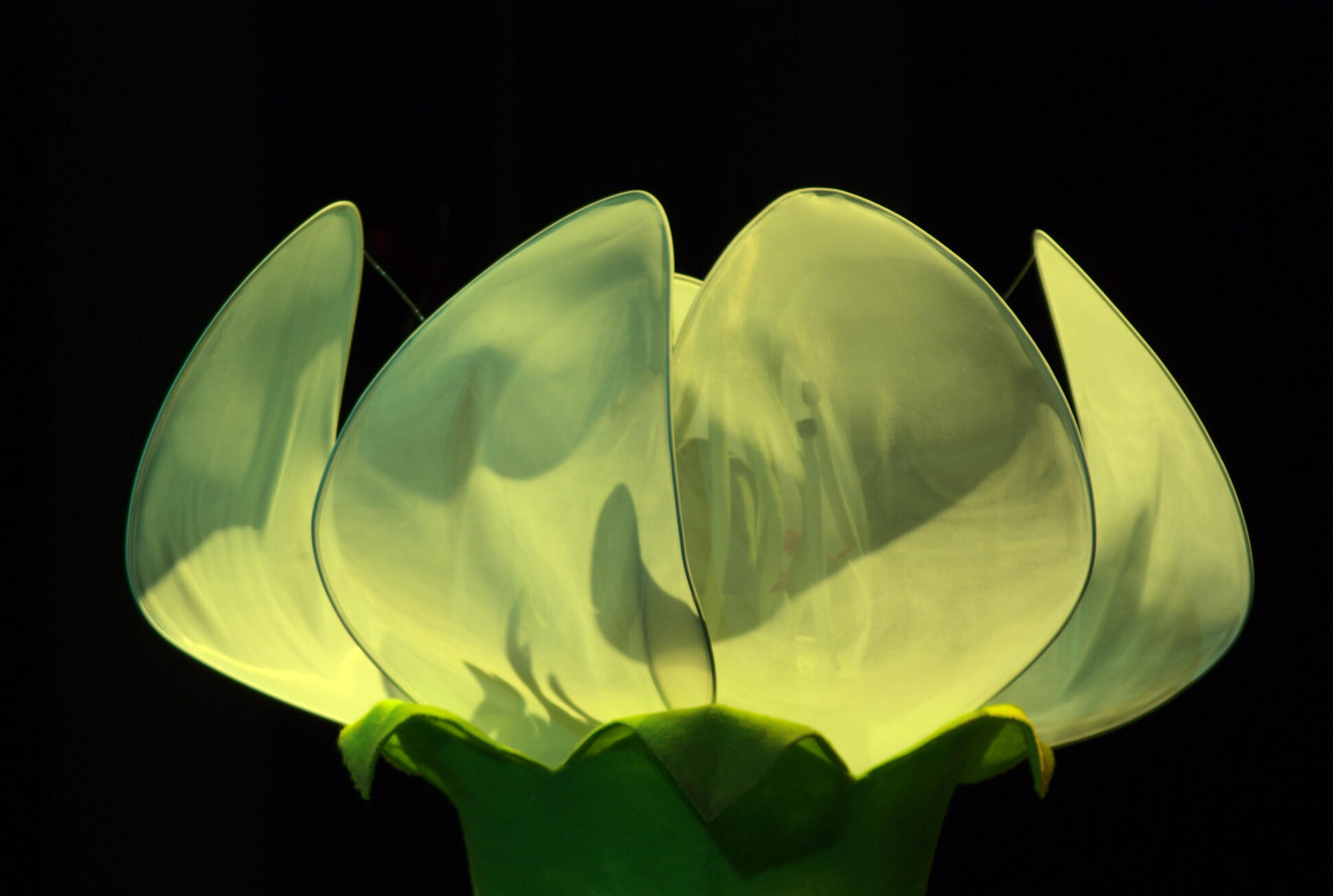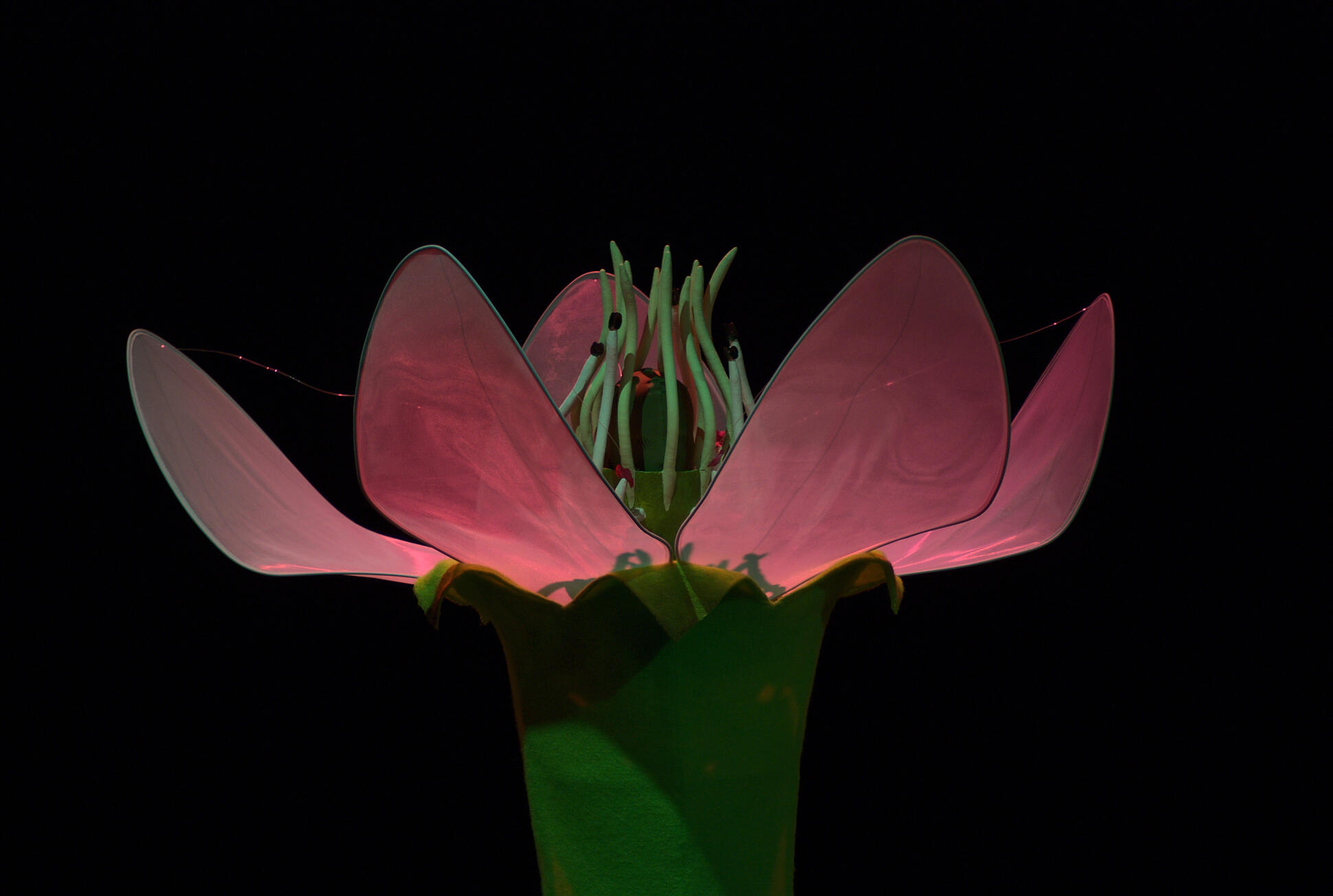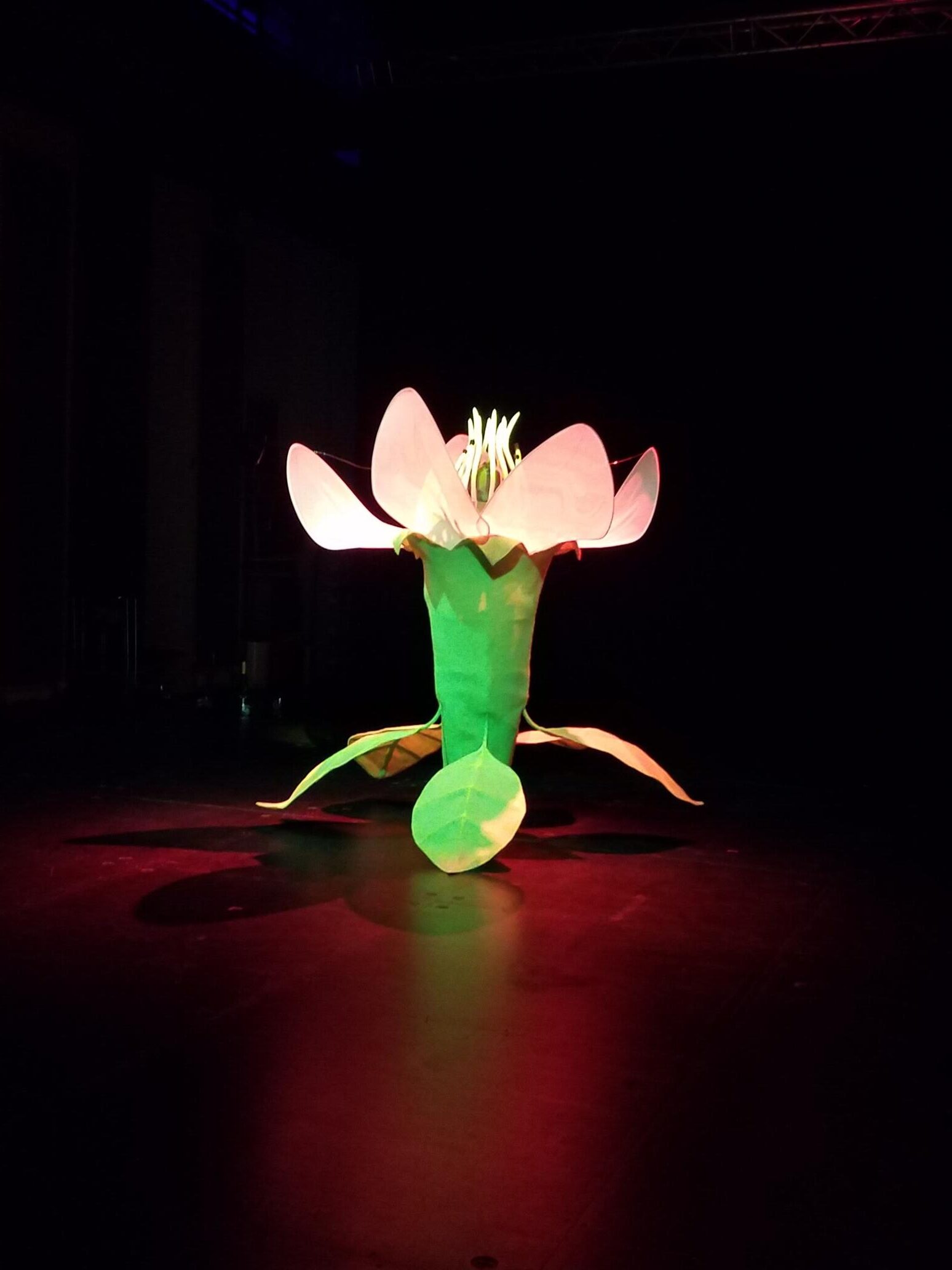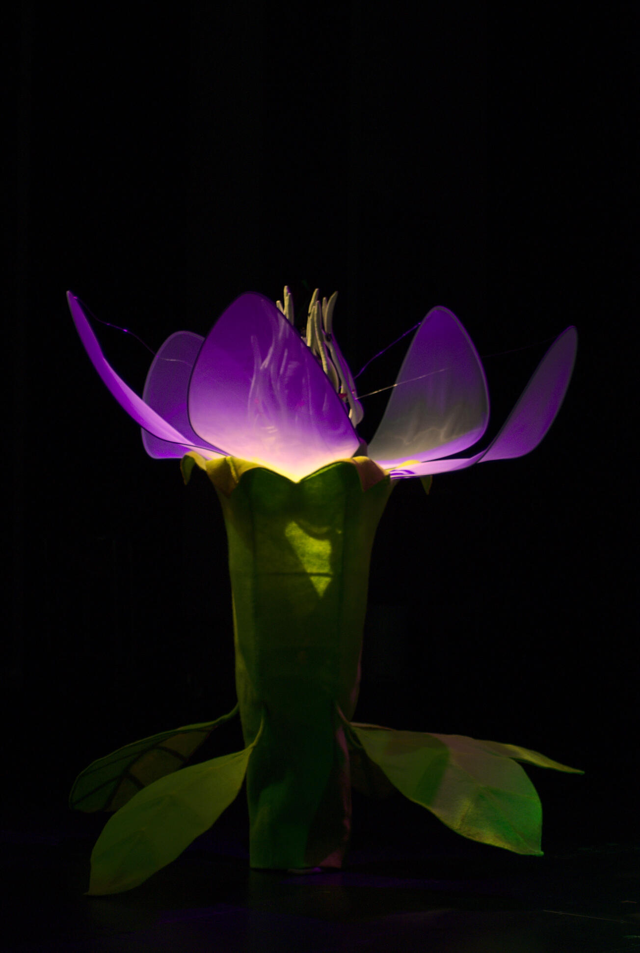 Die Trägerin kann das Kostüm selbst bespielen und einen Mechanismus betätigen durch welchen sich die Blütenblätter öffnen und schließen lassen. Durch die leichte Unterkonstruktion aus Peddigrohr, dass traditionell als Material zum Korbflechten verwendet wird, eignet sich das Kostüm als Walking Act, kann aber auch einfach als tragbare Skulptur wirken.