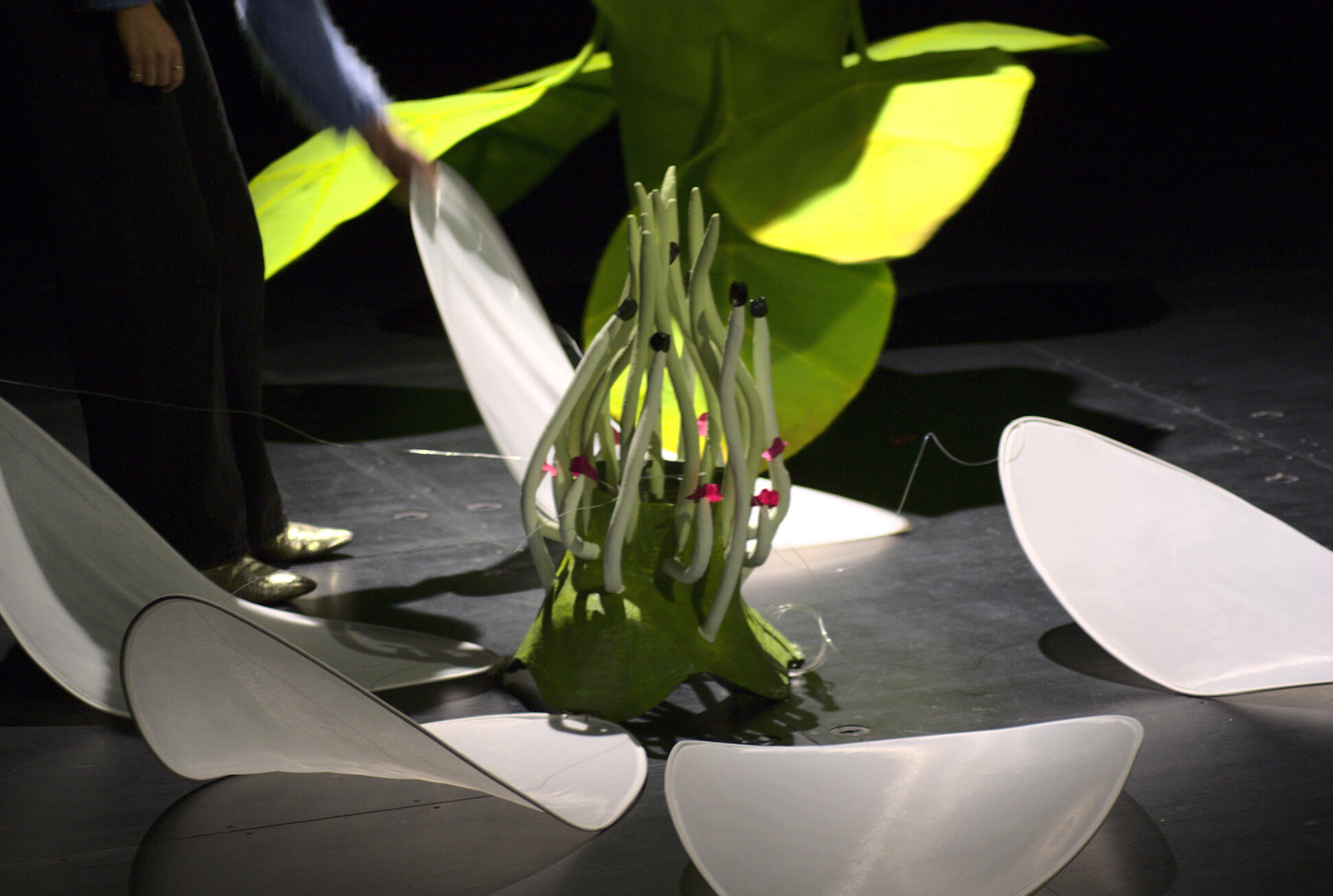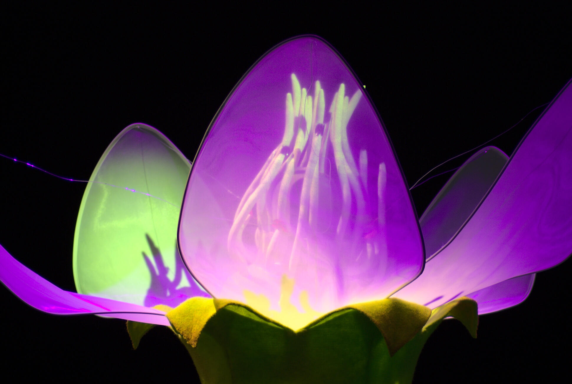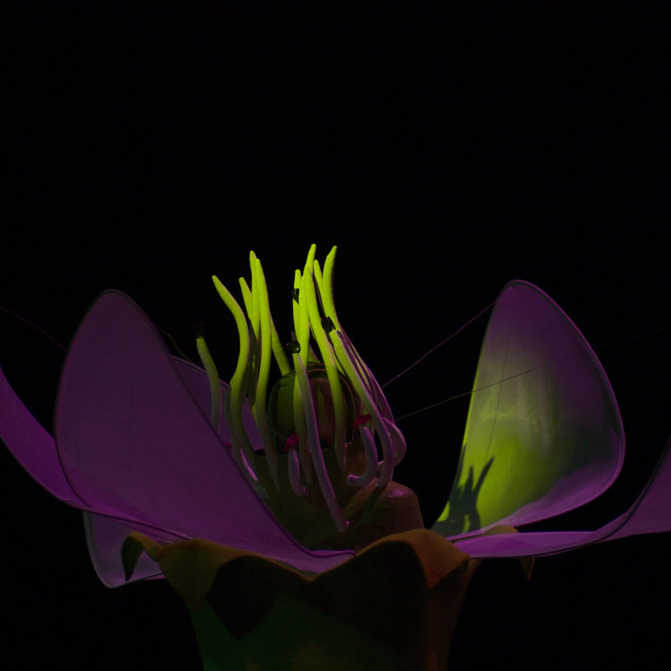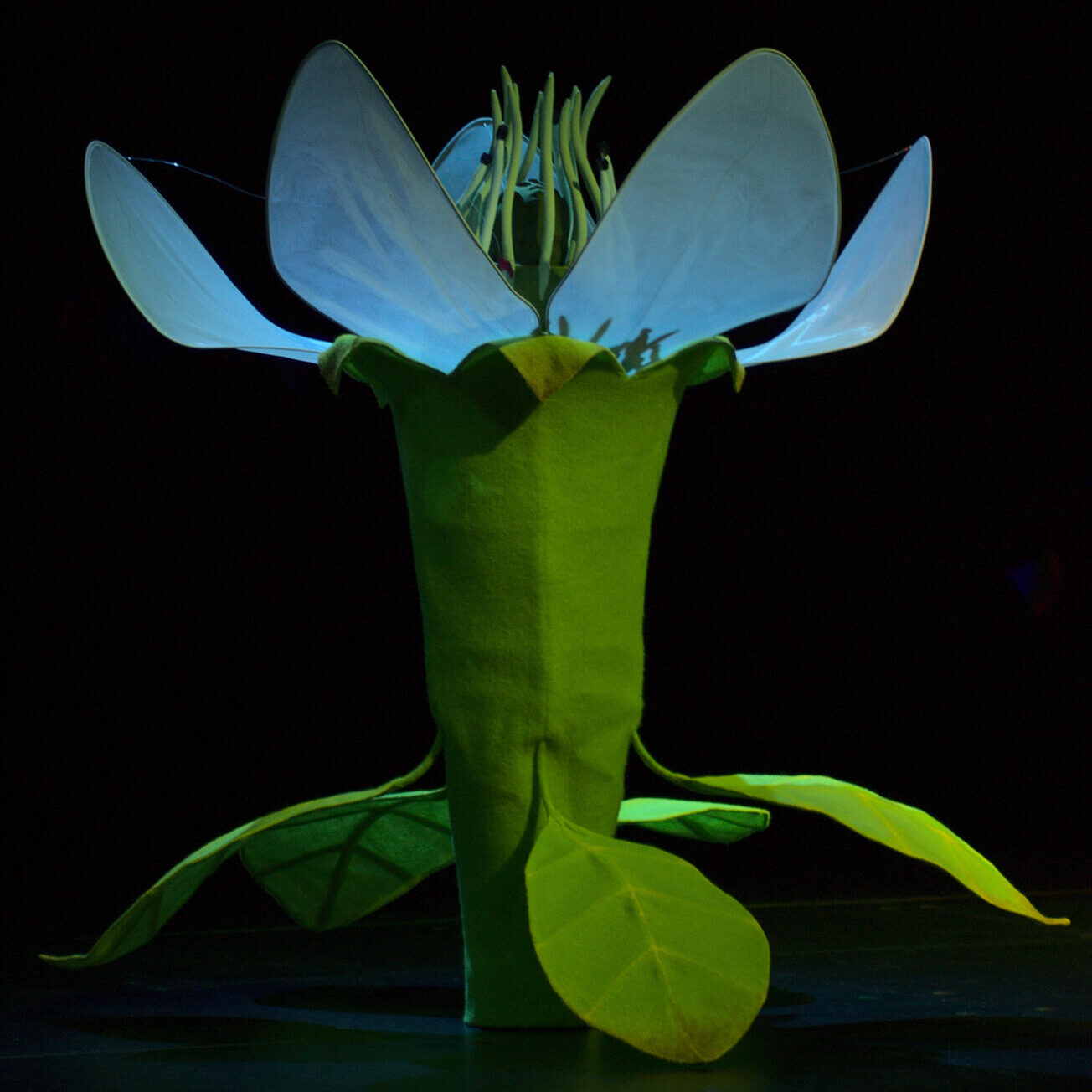 Die Trägerin kann das Kostüm selbst bespielen und einen Mechanismus betätigen durch welchen sich die Blütenblätter öffnen und schließen lassen. Durch die leichte Unterkonstruktion aus Peddigrohr, dass traditionell als Material zum Korbflechten verwendet wird, eignet sich das Kostüm als Walking Act, kann aber auch einfach als tragbare Skulptur wirken.